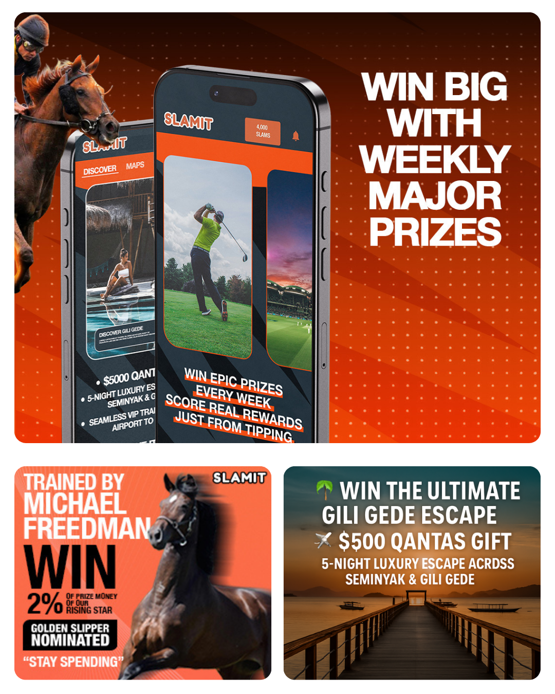 Rack up SLAMS and turn them into serious wins — from gift cards and bar tabs at your local, to luxury escapes on Gili Gede and even a share of prize money from our stable star Stay Spending.