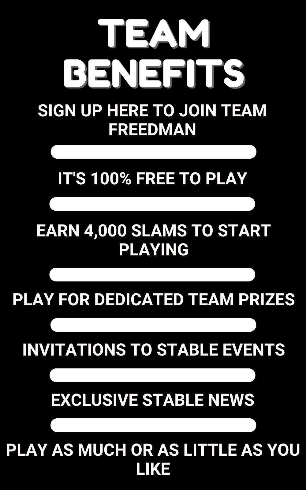 You earn SLAMS from all winning selections, finishing 1st, 2nd or 3rd in from each challenge or by winning the major prize THE BAT.