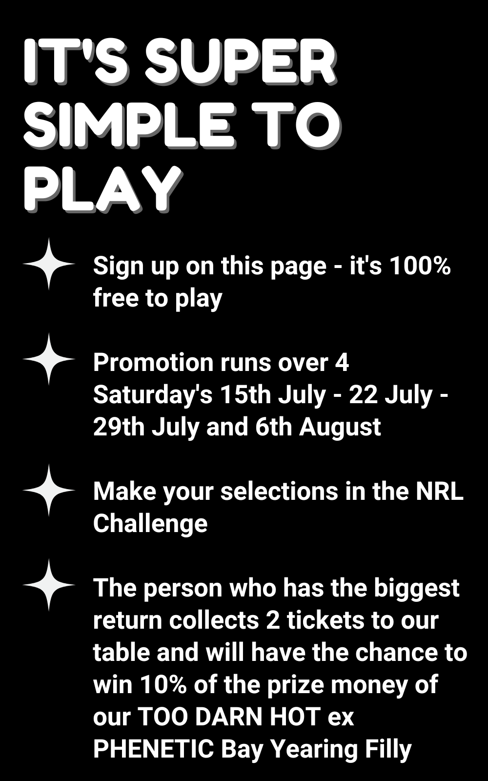 Simply make selections across the nominated games, the person who has the biggest return from the games is declared the winner